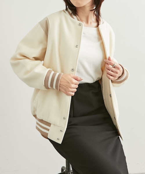 ★COLLAGE GALLARDAGALANTE SELECT●スタジャンを代表する人気ブランドSKOOKUM。●スタイリングに取り入れやすい落ち着いた配色がポイントです。●パンツにもスカートにも合わせやすいバランス。●エレガントなスタイリングの外しにも、マニッシュな着こなしにも、トレンド問わずいつまでも長く着ていただけるアイテムです。【MATERIAL】表地:毛 90% ナイロン 10%裏地:ポリエステル 100% リブ部分:アクリル 90% ポリエステル 9% ポリウレタン 1%洗濯:洗濯機洗い不可【SKOOKUM/スクーカム】1939年にアメリカ・ワシントン州で設立されたセントラリア・ニッティング・ミルズ社のブランド。 スクーカムについて セントラリア・ニッティング・ミルズ社は3世代に渡り、家族経営で上質なニットやジャケットを手掛けてきた老舗メーカー。地元の大学を中心に、スタジアムジャンバーを生産し始めた。 スクーカム」とは、インディアンの言葉で、「最高の」「他に類を見ない」という意味で、一枚一枚が職人たちの手によるハイドメイドで作られている。またブランドを代表する耐久性、防水性に優れた100%ヴァージンウールを使用したジャケットは、創業以来製法を変えておらず、世界中に根強いファンを獲得している。#大人カジュアル