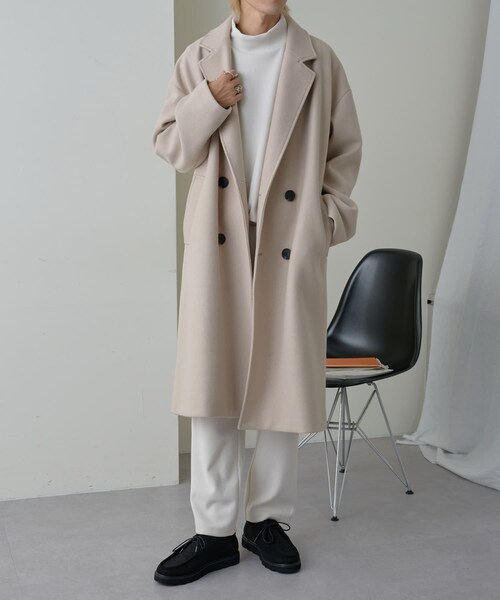 【COLONY 2139人気素材の“テックウール” ダブルコート】ゆとりを持たせたサイジングと、ルーズな丈感が落ち感と上品さを醸し出すダブルコート。動きの出るバックスリットデザインがポイント。ボタンをすべて閉めてもバランス良く、中にハイネックや厚手ニットを着込んでも快適な着心地を叶える一着。保温性に優れた素材に加え、裏地付きで防寒性もバッチリな今季最強コートです。【テックウール】COLONY 2139 今季イチオシの素材“テックウール”短い繊維を何枚も重ね、多数の針(ニードル)のついた機械で圧縮してフェルト状にした生地。しっかりとしていて柔らかく保温性に優れています。******************■商品特徴洗濯方法:家庭洗濯不可(石油系溶剤による弱いドライクリーニングが可能)裏地:あり透け感:なし伸縮性:なし光沢感:なし生地の厚さ:厚手******************■素材表地:ポリエステル78%,アクリル12%,レーヨン10%裏地:ポリエステル100%******************※着用、お取り扱いの際は、商品についている品質表示とアテンションタグを必ずご確認下さい。※商品タグに記載されている商品名がWEBでの表記名と異なる場合があります。※画像の商品はサンプルです。実際の商品と仕様、加工、サイズが若干異なる場合がございます。 ※照明の関係により、実際よりもやや明るく見える場合がございます。またパソコンなどの環境により、若干製品と画像のカラーが異なる場合もございます。予めご了承くださいませ。 【お気に入り登録】してお得な情報をCHECK!!・「商品のお気に入り登録」で再入荷通知や、ラストの通知、セール通知も受け取ることができます。・「ブランドのお気に入り登録」で新商品や再入荷など、お得な情報を受け取ることができます。mensouter
