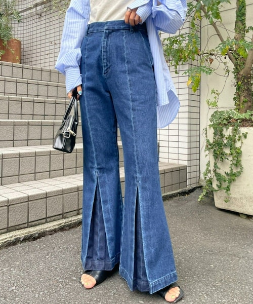「フレア×センターシーム」美脚効果抜群のデニムパンツ・全身のバランスをきれいに見せてくれるフレアライン・きれいめからカジュアルまでアイテムを選ばず、シーズンレスに活躍する1着・いつものデニムを変えるだけでオシャレに[コーディネート]ロンTやロゴスウェットを合わせたカジュアルスタイルが定番!足元もスニーカーやパンプス、ブーツまで幅広い合わせが可能。シンプルなシャツを合わせて少しきれいめなスタイリングもおすすめです◎透け感:なし伸縮性:なし裏地:なし光沢:なし※着用、お取り扱いの際は、商品についている品質表示とアテンションタグを必ずご確認下さい。※画像の商品はサンプルです。実際の商品と仕様、加工、サイズが若干異なる場合がございます。 ※照明の関係により、実際よりもやや明るく見える場合がございます。またパソコンなどの環境により、若干製品と画像のカラーが異なる場合もございます。予めご了承ください。_______________________________________________________________気になるアイテムはお気に入り登録がおすすめです・お気に入り登録した商品はメニューの「♡お気に入り」ボタンから、一覧表示することが出来ます。・完売商品の再入荷情報を受け取る事が出来ます。パソコンの場合・・・「カートに入れる」ボタン横に表示されている「♡」をクリックしてください。スマートフォンの場合・・・商品画像右上に表示されている「♡」をタップしてください。PALCLOSETアプリのブランドフォローがおすすめです・新商品やお得な情報をいち早くcheckする事が出来ます。・スタッフコーディネートや店舗ごとのブログをお楽しみ頂けます。※キャンペーンやフェアにより価格が変動する場合がございます。※照明やパソコンなどの環境により、製品と画像のカラーがやや異なって見える場合もございます。※サンプルで撮影している為、実際の商品と若干仕様が異なる場合がございます。≪返品・交換について≫・着用後、洗濯後の返品・交換は致しかねます。・商品到着後、着用前に商品状態のご確認をお願い致します。