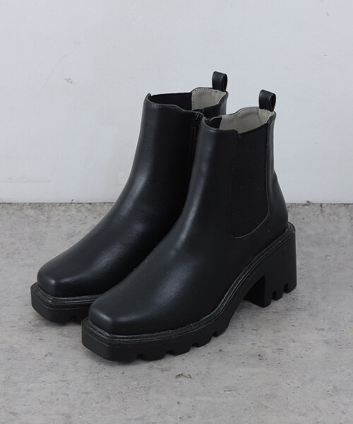 WEB・一部店舗限定商品ゴツめな厚底ソールのサイドゴアブーツギザギザとしたゴツめなソールが印象的なサイドゴアブーツ。存在感のあるデザインでコーディネートのアクセントとしておすすめなアイテムです。定番人気のスクエアトゥと、スリムな足首周りのシルエットが足元をすっきり見せてくれます。高めなヒールながらも前部分が厚底になっていて見た目ほど高低差がないので、疲れにくいのも嬉しいポイント。インソールもクッション性が高く、履き心地も快適です。サイドファスナーで着脱がラクなのも◎【ポイント】・存在感のあるトラックソール・トレンドなサイドゴア&厚底デザイン・すらっと見えるスクエアトゥ・サイドファスナーで着脱がラク■素材甲材: 合成皮革, 底材: 合成底※着用、お取り扱いの際は、商品についている品質表示とアテンションタグを必ずご確認下さい。※商品タグに記載されている商品名がWEBでの表記名と異なる場合があります。※画像の商品はサンプルです。実際の商品と仕様、加工、サイズが若干異なる場合がございます。 ※照明の関係により、実際よりもやや明るく見える場合がございます。またパソコンなどの環境により、若干製品と画像のカラーが異なる場合もございます。予めご了承くださいませ。 【お気に入り登録】してお得な情報をCHECK!!・「商品のお気に入り登録」で再入荷通知や、ラストの通知、セール通知も受け取ることができます。・「ブランドのお気に入り登録」で新商品や再入荷など、お得な情報を受け取ることができます。