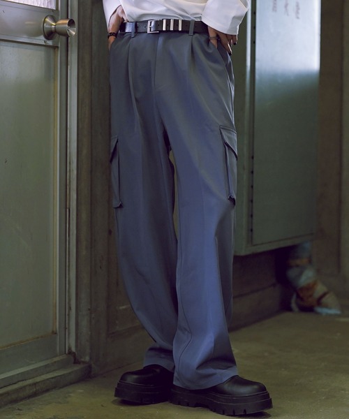 G.O.C(ジーオーシー) タックワイドカーゴトラウザードレープ感の強い素材をトレンドのワイドカーゴ仕様に落とし込んだ上品かつモダンなカーゴパンツ。無骨なイメージになるカーゴパンツですが、深めのワンタックを入れワイドシルエットに。また通常より大き目のフラップポケットをアクセントに施しモードな印象に昇華。素材はとろみ感の強い上質なポリエステルギャバを採用。シルエットと相まって強いドレープ感を生み、モダンな空気感を纏わせる。肌触りも良く、着用のストレスを感じさせない心地の良い着用感。カラーはブラック、オフホワイト、ブルーの3色展開で大人っぽい印象に仕上げた。どんなトップスにもマッチし、合わせるだけでトレンド感とアーバンな空気感を纏うことのできるおすすめの1本。同素材のフラップポケットバルーンZIPブルゾンとのセットアップ着用も◎セットアップ品番:213560 フラップポケットバルーンZIPブルゾン『RETRO GLOSSY』懐古的であり光沢のあると言った事を意味する<RETRO GLOSSY>をテーマに掲げ、どこか懐かさを感じるようなスタイルの中にも艶やかさ、色気のエッセンスを加えた独創的な世界観を構築。G.O.C(ジー・オー・シー)『Geex of Clothes-洋服好きのすべての人に-』テーマに着回しができるトレンド&ベーシックアイテムを展開。 旬なファッションがスタイルを選ばないアイテムで自分らしいファッションを提案。