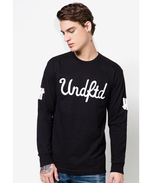 Black S Script Long Sleeve Tee by Undefeated features soft fabric with white typography on the front, back, and both sleeves, perfect for a relaxed, stylish getup.- Cotton blend- Round neckline- Long sleeves- Ribbed cuffs- Regular fit- Unlined