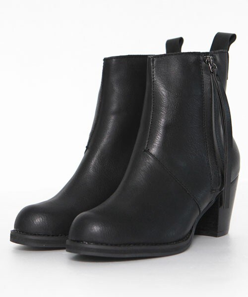 シンプルなデザインとシックなブラックカラーで、 スタイリッシュな印象のショートブーツ。 サイドのジッパーとさりげなく入ったステッチラインがポイント。 ミドルヒールで安定感のある履き心地です。 ※WEARに記載してある金額と、DHOLIC通販サイトに記載してある金額にシステム都合上誤差がございますが、正しい金額はDHOLIC通販サイトの方です。
