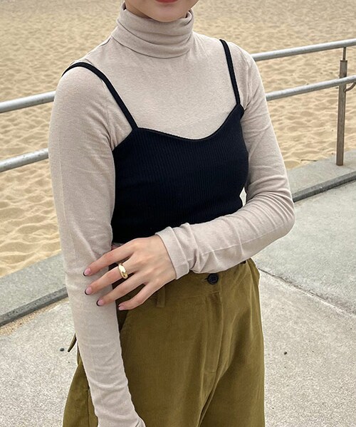 何か物足りないなという時に大活躍してくれるビスチェです?柔らかい素材で窮屈感もなく、楽に着用していただけます!写真のようなハイネック合わせはもちろんブラウスやワンピースとも相性抜群です!取り入れるだけでトレンディなスタイルに仕上がり、お洒落さんになれること間違いなしです!着用カラー:ブラック