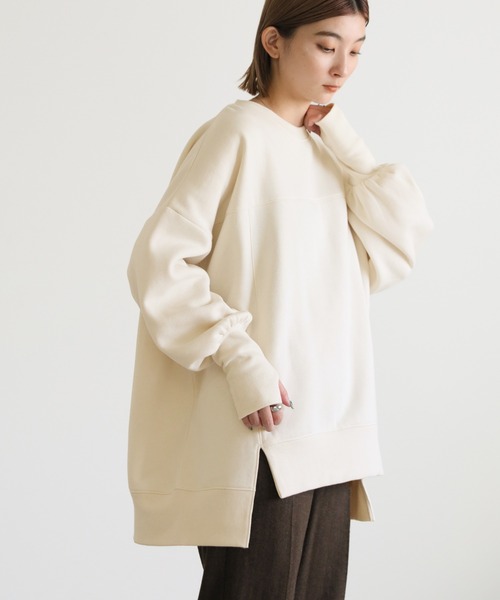 -point- & -styling- 身幅と腕周りにゆとりを持たせたオーバーサイズ仕様です。 ドロップショルダーに袖口のリブ、フロントスリットが抜け感を演出します。 切り替えステッチの程よいアクセントでカジュアル感はありつつも、ラフ過ぎない着こなしに。 肉厚な生地感に包み込むような柔らかい肌触りの裏起毛なので暖かく着用いただけます。 スカートにワイドパンツでゆるっと合わせたり、スカートにロングブーツ合わせのレディライクなスタイリングもおすすめです。 クルーネックオーバーサイズサイドスリットスウェット ---------------------------- 素材 ポリエステル65%・綿35% ---------------------------- 伸縮性 なし 裏地 なし ---------------------------- ※モニター・環境等により実際の商品と多少色味が異なって表示される場合がございます。 予めご了承をお願いいたします。 【お買いものをお楽しみいただく為に!】 ▼商品のお気に入り登録 完売カラーの再入荷通知や、ラスト1点の通知、セールの通知も受け取ることができます。 ▼ブランドのお気に入り登録 新商品や再入荷など、いち早くブランドのお得な情報を受け取ることができます!