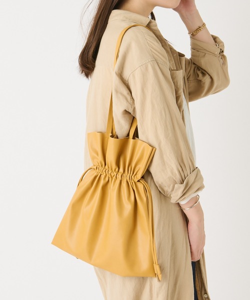 ▼人気のフェイクレザーシリーズにA4OKな2wayトートができました! スマホショルダーやフラットトートで人気の素材を今回は巾着タイプにデザインしました。ベーシックな色に加えて、秋冬っぽさをできる限定色“マスタード”も取り入れました。どのカラーがお好みですか? 【POINT】 ・そのままでも、また絞って巾着にしても使える2wayタイプ ・A4サイズ収納可能で通勤通学にも◎ ・マットで柔らかなフェイクレザー素材採用 ・コートやニットの上からでも肩掛けOK ・内側にポケット×1あり ・使用しない時は小さく畳めるので、サブバッグとしても◎ 【色の種類】 ●ブラック ベーシックな色がお好きな方に。通勤や通学にも使いやすいザ・ベーシックなデザイン。 ●シルバー 主役バッグとして持ちたい方に。どんなテイストのお洋服にも合わせやすい、ぎらぎらしないシルバーです。 ●ホワイト 暗めなアウターやモノトーン好きな方に。春先にも使いやすい色味です。 ●マスタード いつもと違った気分でバッグを持ちたい方に。マットなマスタードは秋冬感をプラスします。
