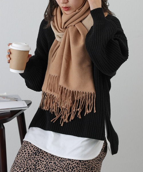 カシミアのような肌触りのリバーシブルストールリバーシブルで使い勝手抜群のシンプルなストール。カシミアタッチのなめらかで上質な肌触りとしっかりとした生地感で、上品な印象を与えてくれます。裏表でカラーが異なるので、コーディネートに合わせて巻くだけで何通りも楽しむことができます。大判サイズなので、ストール、マフラー、膝掛けとしても使える一枚あると重宝する万能なストールです。豊富なカラーでユニセックスで幅広い方にお使いいただけます。【ポイント】・リバーシブルの便利なストール・カシミアのような上質な肌触り・ストール、マフラー、ひざ掛けにもなる大判サイズ・ユニセックスアイテム----------------------------------------------------■カラー×裏面カラーオフホワイト×ライトベージュブラック×グレーライトグレー×チャコールグレーキャメル×ベージュ----------------------------------------------------■素材・洗濯について素材:レーヨン50%, ポリエステル47%, ナイロン3%洗濯:手洗い可----------------------------------------------------※着用、お取り扱いの際は、商品についている品質表示とアテンションタグを必ずご確認下さい。※商品タグに記載されている商品名がWEBでの表記名と異なる場合があります。※画像の商品はサンプルです。実際の商品と仕様、加工、サイズが若干異なる場合がございます。 ※照明の関係により、実際よりもやや明るく見える場合がございます。またパソコンなどの環境により、若干製品と画像のカラーが異なる場合もございます。予めご了承くださいませ。 【お気に入り登録】してお得な情報をCHECK!!・「商品のお気に入り登録」で再入荷通知や、ラストの通知、セール通知も受け取ることができます。・「ブランドのお気に入り登録」で新商品や再入荷など、お得な情報を受け取ることができます。