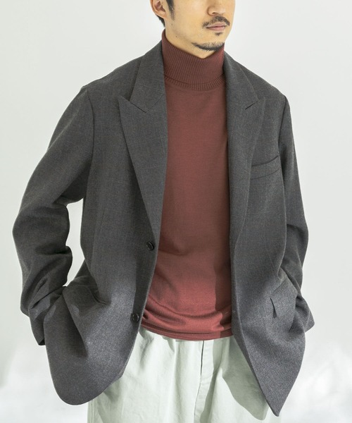 90'sムード漂うピークドラペル2ボタンジャケット 肩幅を出しながらボクシィでリラクシィなシルエットで仕上げました。高級感のある梳毛ウールを使用し軽量性を兼備しながらも、温かみのあるラスティックな素材をアサイン。敢えて相反するGREY×BROWNチェックとベージュストライプの2パターンで提案します。差し色インナーでクラッシックでありモダンなスタイルを楽しみたい1着。 総重量 : 約615g ※商品画像は、光の当たり具合やパソコンなどの閲覧環境により、実際の色味と異なって見える場合がございます。予めご了承ください。 ※商品の色味の目安は、商品単体の画像をご参照ください。 ----------------------------- 透け感:なし 伸縮性:なし 裏地:あり 光沢:なし ポケット:あり -----------------------------