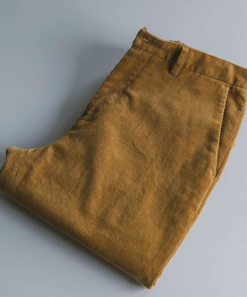 冬の定番素材"Corduroy(コーデュロイ)"をテーパードがきいた綺麗めな定番トラウザーに落とし込みました。昨年のモデルからヒップや裾幅を少し細くし、さらにすっきりとした見た目に仕上げました。穿き心地のよさはキープするために、股ぐりの寸法や計上を調整しています。ポリウレタンを混紡しており、高いストレッチ性に優れています。またコーデュロイ素材ならではの表面感が、着て暖かいのはもちろんのこと見た目も温かみのある一着に仕上がっています。引き続き、ベルトループとゴムをあしらったウエスト、野暮ったくないレングス、ワンタックをあしらったカジュアルにも合わせられる仕様で、汎用性の高さが光る一本です。※商品画像は、光の当たり具合やパソコンなどの閲覧環境により、実際の色味と異なって見える場合がございます。予めご了承ください。※商品の色味の目安は、商品単体の画像をご参照ください。▼お気に入り登録のおすすめ▼お気に入り登録商品は、マイページにて現在の価格情報や在庫状況の確認が可能です。お買い物リストの管理に是非ご利用下さい。-----------------------------透け感:なし伸縮性:あり裏地:なし光沢:ややありポケット:あり-----------------------------