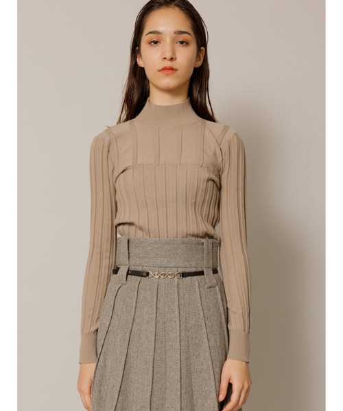 【TONAL公式InstaLive】11/11 配信 カラー:ブルー微配色のリブがかわいいタートルニット。さらっとしたドライタッチのニットで、ストレッチ性も抜群です。デコルテでリブのピッチを変更しており、1枚でもおしゃれなニットに。太目のリブで縦長に見え細見え効果も◎インナーとして衿を見せて着るスタイリングもおすすめです。