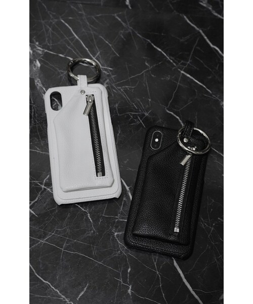 TYPE iPhone X (COLOR)2color ・BLACK LEATHER ・WHITE LEATHER リングやジップなどの金具:SILVER (CONDITION RANK) SS:新品アイテム (DETAIL) ・ジップポケット搭載(スナップボタン留め) ・シルバーリング付属(取り外し可能) ・素材:合成皮革/ポリウレタン/ポリカーボネート 商品コード:2201200702024
