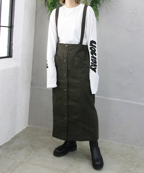 商品名:Sheson(シーズン)コットンツイルジャンパースカート 商品番号:a225578l 商品説明:【2022AW】 程よい厚みと丈夫さが特徴のツイル素材を使用したジャンパースカート 肩のストラップは二段階で調整が可能。 取り外しもできるのでスカートとしてもお召し頂けます。 シーズンレスで長く着れ、Iラインシルエットのスタイルアップ効果も嬉しいアイテム。 ※フロントのボタンは固定デザインとなっており取り外しはできません *商品画像のお色は撮影環境やモニターによって、 実物と若干異なる場合がございます。 *他のサイトと在庫を共有している為、ご注文頂いた商品が欠品となる場合もございます。 *3,980円以上は送料無料(沖縄、離島は9,800円以上で送料無料)となります。 宅配便550円、離島1,210円、沖縄1,430円、メール便一律280円(離島・沖縄含む)です。 ------------------------------------------------------------------------- サイズ:F(モデル155cm) 平置き・実寸: ・ウエスト38cm ・ヒップ47cm ・総丈83cm ※個体差がございます **生地詳細** 【裏地】なし【生地の伸縮】なし【生地の透け感】なし 素材:綿100% 製造:中国 カラー:グレーベージュ・チャコール