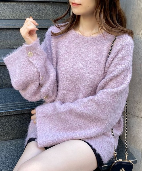 NICECLAUP 2022 autumn Collection イチオシの秋服できました! トレンドのお袖にスリットが入ったデザインのニット。 簡単にトレンドの着こなしができるアイテム。 袖にはボタン開き出来る仕様になっているので、開け具合を変えることによって 表情の違う着こなしが楽しめます。 ゆったりしたシルエットなので体型カバーの効果も! シンプルなデザインなのでどのボトムにも合わせやすいのも◎ 1枚での着用はもちろん、レイヤードにもおすすめなアイテムです。 ■オススメスタイリング 1枚で着こなすのはもちろん、 Tシャツやタートルトップスなどとのレイヤードの着こなしもオススメ。 今季トレンドのアームウォーマーと合わせて頂くと旬なスタイリングに! シンプルなデザインなので、パンツにもスカートにも相性が良く、 キャミワンピースの上からレイヤードでお使いいただくのもオススメです。 ------------- 裏地:なし 伸縮性:あり 生地の厚さ:普通 生地の重さ:普通 洗濯:手洗い ------------- 【ニットアイテムのお取り扱いのご注意】 ●この製品は素材の特性上、着用やクリーニングにより、毛羽立ちや毛玉が発生することがあります。 1、1日着用した際は、2.3日休ませるなどしてご使用ください。 2、毛玉が出来てしまった場合は、毛玉取り器、又はハサミで丁寧にカットして取り除いてください。 ●この製品はデザイン性、風合いを重視し編みたてたニット製品です。 着用により若干の伸びが生じますのでご了承お願いします。 又、保存時のハンガーのご使用は避け下さい。 ※サンプルでの撮影のため、実際のものと仕様や色が異なる場合があります。 ※室内、室外での撮影のため実際より明るく映っていたり、暗く映っていたりする場合がございます。 ※品質表示を必ずご確認下さい。 【商品のお気に入り登録】 完売カラーの再入荷や、ラスト1点のお知らせ、セールの通知を受け取ることができます。 【ブランドのお気に入り登録】 新作入荷や再入荷情報など、ブランドの情報をいち早くお届けします。 ぜひご登録ください♪