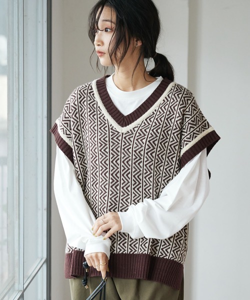 ジャガード柄がモダンな雰囲気を漂わせるニットベスト。Vネック×サイドスリットが女性らしい抜け感を演出します。ゆったりとしたシルエットで着心地もノンストレス◎いつものコーディネートにプラスワンするだけでも、こなれ感のあるスタイリングに決まる1着です。◆How to Care・洗濯:可(手洗い)・漂白:酸素系OK、塩素系NG・タンブル乾燥:不可・自然乾燥:日陰平干し・アイロン:温度110℃まで(あて布使用)・ドライクリーニング:石油系溶剤※詳しくは商品記載の洗濯表記をご確認ください。……………………………………透け感[無し]裏地[無し]伸縮性[やや有り]光沢感[無し]生地の厚さ[普通]付属品[無し]ポケット[無し]…………………………………… ※モデル着用画像は、光の当たり具合で色味が違って見える場合がございます。商品の色味は、物撮りの画像をご参照ください。 ̄ ̄ ̄ ̄ ̄ ̄ ̄ ̄ ̄ ̄ ̄ ̄ ̄ ̄ ̄ ̄ ̄ ̄ ̄● CRAFT STANDARD BOUTIQUE ●(クラフトスタンダードブティック)丁寧な作りのアイテム、一生飽きないアイテム、毎日の気分を変えるアイテム。それらをキュレーションしたお店が『クラフトスタンダード ブティック』です。▼商品のお気に入り登録がおすすめです ▼商品ページ内のハートマークをクリック。完売時の再入荷や、最後の1点の通知、最後の1点など、お得なお値下げ情報を受けとる事ができます。【お知らせ】ページでも通知が確認できます。 ̄ ̄ ̄ ̄ ̄ ̄ ̄ ̄ ̄ ̄ ̄ ̄ ̄ ̄ ̄ ̄ ̄ ̄ ̄