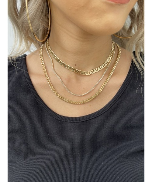 【商品説明】 ■Detail 一つで首元のスタイリングが完成する3連ネックレス。 2種類の太チェーンと、華奢なラインストーンチェーンを組み合わせたレイヤードデザインがコーデのアクセントに。 チャームや無駄な付属が付いていないのでどんなスタイルでも合わせやすいです。 <おすすめ便利機能> ▼商品のお気に入り登録▼ 商品ページ内のハートマークをクリック! 完売カラーの再入荷や、 ラスト1点の通知、 お得なお値下げの通知を受ける事ができます。 ▼ブランドのお気に入り登録▼ 新商品や再入荷など、 ブランドのお得な情報をいち早くお知らせします。 ぜひご活用ください!