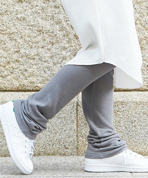 ワンピースの下に穿くために作られたゆったりめのレギンス。 丈は長めで足元でくしゅくしゅっとラフに。 ゆったりサイズで手放せない1着になること間違いなし。 伸縮性のあるカットソー生地を使用したレギンスです。幅広いコーディネートに大活躍してくれます。 丈を長めに設定しているので、足首でくしゅっとさせて着用するのもおすすめです。