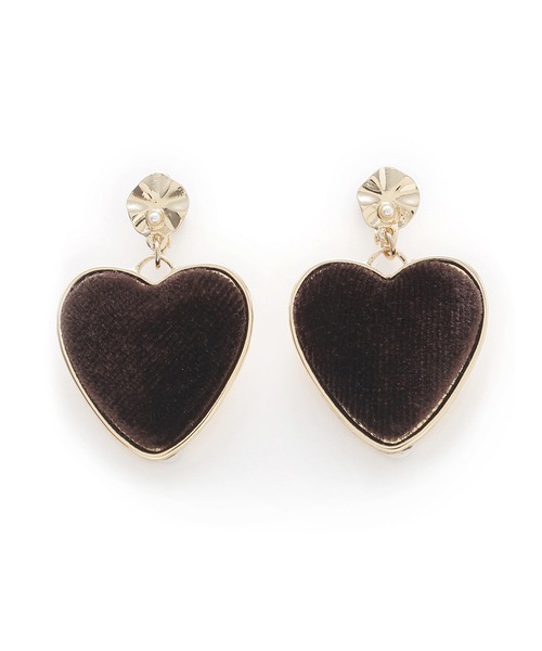 【愛らしいハートモチーフでトレンド感満載のイヤリング】 【Design/Styling】 今シーズントレンドのハートモチーフを主役にしたイヤリング。甘くなりすぎないカラーや素材を使用し大人っぽく仕上げました。デイリーシーンからパーティールックまで幅広く合わせられます。シーズンムード高まるベロア素材を用いたブラウンと今年らしいツイード素材を使用したブラックの2色をご用意。 ※照明の関係により、実際よりも色味が違って見える場合があります。 またパソコン・スマートフォンなどの環境により、若干製品と画像のカラーが異なる場合もございます。予めご了承ください。 商品の色味は、商品単品画像をご参照下さい。 ※商品画像はサンプルのため、色味やサイズ等の仕様に変更がある場合がございますので、予めご了承ください。