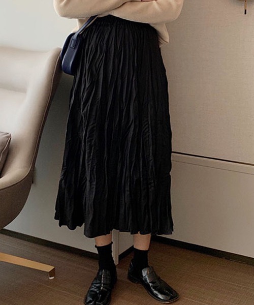 シワ&プリーツ加工になって上品かつカジュアルさがあるロングスカートです。季節を問わず使えるロングスカート動きのあるシルエットで華奢見えふんわり揺れるプリーツが女性らしい雰囲気を醸し出します。シワ加工がこなれ感を演出してくれるので穿くだけでオシャレなコーデが完成。ウエストゴムでストレスフリーな着心地なのも嬉しいポイント。丁度良い丈感なので全体のバランスもとりやすく、どんなトップスとも合わせやすいアイテムです。大きめのニットと合わせてあえてだぼっとさせるのがトレンド。カジュアルにもフェミニンにもマッチするので着回し力抜群で365日お使いいただけます。ロングスカートのクシュクシュ感が今っぽく後ろから見た時のシルエットも可愛いです。ウエスト部分はゴムなので体型を気にせず使えます。季節:1年中着まわせて、きれいめにもカジュアルにもいろんなシーンで活躍する素材感です。 。・:*:・゜ Dream garden `♡、 。・:*:・゜【注意事項】※着用画像は撮影の環境により色味が異なります。物画像の色味をご確認ください。※画像の商品は光の照射や角度により、実物と色味が異なる場合がございます。また表示のサイズ感と実物は若干異なる場合もございますので、予めご了承ください。※画像の商品はサンプルとなります。実際の商品と色味、仕様、加工、サイズ、素材等が若干異なる場合がございます。