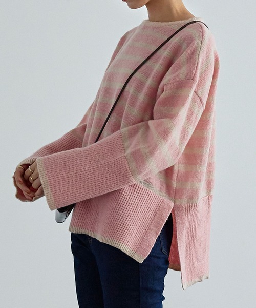 ゆったりしたサイズ感で今年らしい抜け感を演出できるニット。アクセントを効かせる配色デザインが、メルハリのあるルックに仕上げます。袖口と裾に施された長めのリブもシンプルながら、こなれた印象を与えてくれます。【素材・サイズ感】ほのかに起毛感がある柔らかくて軽いニット素材。ふんわりとしたエアリー素材でヒップをカバーし、サイドスリットがすっきりと見せてくれます。ワイドめの袖口がトレンド感をぐんとUPします。《KOBE LETTUCE ー神戸レタスー》 プチプラレディースファッションからコスメまで、トレンドアイテムを豊富に取り揃えております。 毎シーズン発売されるインフルエンサーとのコラボ商品はSNSでも話題に。