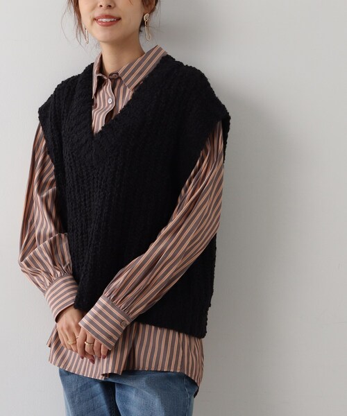 【デザイン】ポンポンが付いた糸とモヘヤタッチの糸をMIXした、ふわふわなニットベストです。素材感が可愛いので、シンプルなカラーでもデザイン性のある見た目に!いつものコーデにレイヤードして、気軽にトレンドを取り入れられる便利なアイテムです。ロンTやシャツ、ワンピースなどどんなアイテムも合わせやすいシンプルなベスト♪【生地感】ふわふわした手触りに程よい伸縮性をもったアクリルニット地を使用しています。※こちらの商品は網目が粗いデザインのため、お手持ちのインナーを合わせて頂くのがお勧めです。#CutieBlonde#Cutie#cutieblonde#cutie#キューティブロンド#キューティ#20代#30代モデル情報:身長168cm B78 W58 H84 着用サイズ:00(FREE)店舗へのお問い合わせ商品番号:256-25004●製品寸法:00(FREE):着丈48cm B102cm 肩幅52cm備考: