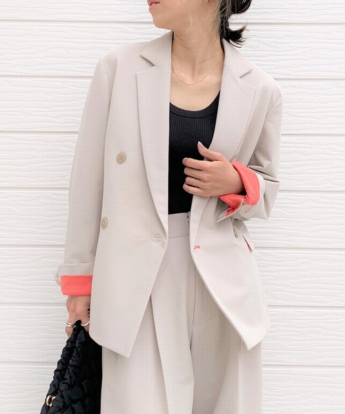 【セットアップ対応商品】セットアップ対応のダブルジャケットです。コンパクト過ぎない絶妙なサイズ感がサマになり、カジュアルにも着こなせる万能なジャケットです。前身頃はセットイン、後ろ身頃はラグランにすることによりきちんと感はありながら動きやすい仕様になっています。折り返した時の袖のカラーとボタンホールの配色を左右で変えてアシンメトリーにしているのもポイント◎スウェットやスニーカーなどカジュアルアイテムを合わせても大人な雰囲気に仕上がります。同素材のパンツ【ZOZO問い合わせ番号:68786354】もご用意しているのでセットアップとしてお召しいただくのもおすすめです。《インフォメーション》◆商品のお気に入り登録完売していても再入荷時に再入荷通知を受け取ることができますので、是非ご登録ください。◆ブランドのお気に入り登録新商品や再入荷などの情報を受け取ることができますので、是非ご登録ください。