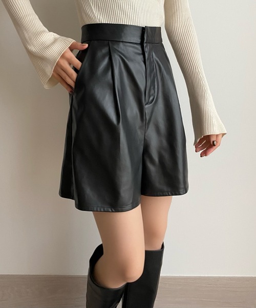 【callautia / カラウティア】 高見えしちゃうレザーショートパンツ。 ■detail 裾に向かってワイドに広がるシルエット+タック入りで 縦のラインを強調してスラっとした脚になれるショートパンツ。 ハイウエストなので、 きになる腰回りをカバーしつつスタイルアップ効果も◎ ロングブーツやタイツなどに合わせて着たい、秋コーデにマストな主役itemです! ※バックゴム入り ■fabric シーズンムード高まるやわらかい生地感のフェイクレザー。 ………………… 透け感:なし 厚さ:やや薄手 伸縮性:若干 裏地:なし シワ:ややなりやすい 推奨シーズン:3月~4月,9月~10月 ※関東の平均気温を目安に推奨シーズンを記載しております。 ………………… ※詳しいお手入れ方法は商品タグをご参照ください。 【※必ずご確認の上、ご検討ください※】 ※通販の特性上、到着時には畳みシワが必ずございますのでご了承ください。 当ブランドではデザイナーの感性を大切にし、デザイン性を重視した商品を提案しております。 画一的な商品ではなく、最新の生地や仕様で個性に焦点を合わせて展開いたしますのでお気軽にお試しください。 ※返品・交換規定は当サイトのヘルプをご参照ください。 ★お買いものをよりお楽しみいただく為に!★ ▼商品のお気に入り登録 お気に入りアイテムの完売カラーの再入荷通知や、ラスト1点の通知、 セールの通知も受け取ることができます。 ▼ブランドのお気に入り登録 新商品や再入荷など、クーポン配布などのお得な情報を受け取ることができます。 ※商品画像は撮影時の光や角度により、実物の色味と異なって見える場合がございます。 ※撮影はサンプル品を使用しており、表示のサイズ感も実物とは若干異なる場合もございますので、 予めご了承ください。 ※生産時期により色・素材・サイズ感など多少異なる場合がございます。予めご了承ください。