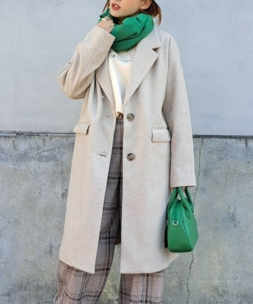【デザイン】 ベーシックで合わせやすいチェスターコート。少し大きめの衿が今年らしい印象です。 【スタイリング】 ゆったりとしたサイズ感で、中にニット類を合わせてもすっきりとコーディネートしていただけます。 シンプルで着回しがきき、一着あると重宝するアイテムです。 【着用コメント(女性) 145㎝/Mサイズ】 ベーシックなデザインのチェスターコート。色んなシーンで使える万能コートです。低身長の私だと膝丈くらいの長さ。大きめでもストンとタイトなシルエットなので縦長効果があってすっきりと着れます。ボタンを閉めてスッキリと前を開けてゆったりとコーディネートに合わせたスタイリングを楽しめます。 【着用コメント(女性) 158㎝/Lサイズ】 膝あたりまでの程よい長さのチェスターコート。コート特有の重さはなく、軽くてサラッと着られますよ。大きめの襟がキリッと上品な印象に。 ボタンの色が茶色なのも可愛いポイント。 【着用コメント(女性) 157㎝/Lサイズ】 定番のシルエットでベーシックなカラーの展開で合わせやすいです!そして冬感をしっかり演出できます。今期らしいゆったりとした袖周りはボリュームのあるトップスの上に重ね着しやすく、着こなしも簡単!また、パーカーの上に羽織ってカジュアルな着こなしもおすすめ。様々な場面で着用ができる1着です。 《 HONEYSUCKLE ROSE 》クラシックでベーシックテイストを根底に、いつもおしゃれでかわいく、そんな女の子が今着たいガーリー・テイストを提案していくブランド。 ーーーーーーーーーーーーーーーーーーーーーーーーーーーー お得に&便利にお買い物を楽しむポイント♪ ▶商品のお気に入り登録(♥ハートマークをクリック) お気に入りアイテムの完売カラーの再入荷通知や、 ラスト1点の通知、セールなどの情報をいち早くお届け。 ▶ショップ・ブランドのお気に入り登録 新商品や再入荷、クーポン配布などお得な情報を随時お届け。 ーーーーーーーーーーーーーーーーーーーーーーーーーーーー