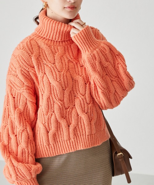 肉厚な生地に立体感のあるケーブルデザインが秋冬らしいニットプルオーバーは、ショート丈にボリュームスリーブのバランスが絶妙でハイウエストのボトムとも相性抜群。ふんわりと柔らかな肌触りで、着心地の良い1枚。 ★《お気に入り登録》でお得な情報をGET★ ・「商品のお気に入り登録」で再入荷通知やラスト1の通知、セールやクーポンの通知も受け取ることができます!→ハートマークをクリック ・「ブランドのお気に入り登録」で新商品や再入荷など、お得な情報を受け取ることができます!