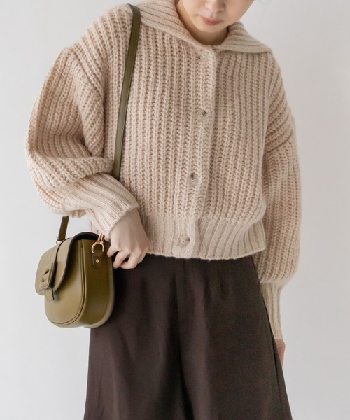 ◆2022AW新商品◆ ざっくりとしたローゲージの糸感がフェミニンな雰囲気のショート丈カーディガン POINT ・コーディネートのバランスが取りやすいショート丈 ・大きめの衿で小顔効果◎ ・肌触りの良い素材 ・ざっくり感のあるニットですが、重すぎないので軽く羽織っていただけます COORDINATE ワンピース合わせはもちろん、ハイウエストのボトムス合わせでもバランスが取りやすい1枚です。 - - - - - - - - - - - - - - - 洗濯方法:手洗い可 生地の厚さ:厚手 透け感:なし 伸縮性:あり 裏地:なし - - - - - - - - - - - - - - -