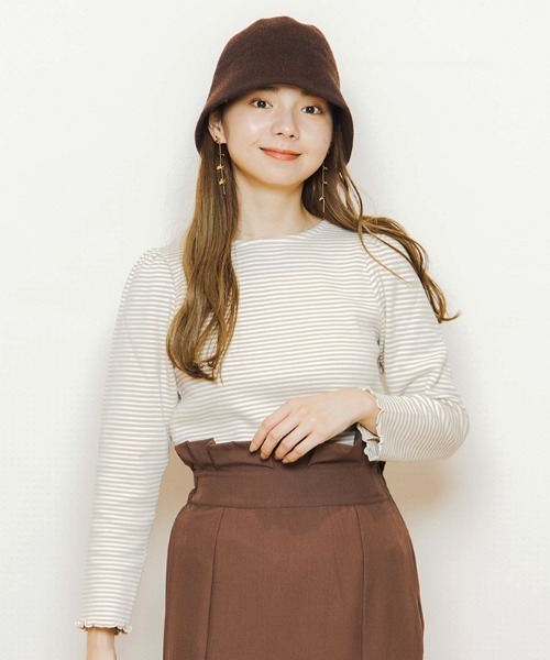 キャラメルのようなカラーが可愛い、フェミニンボーダーカットソー♪ 季節にマッチした可愛らしいカラーと パフ袖のディティールでカジュアルになりすぎず、 柔らかくコーデに合わせやすい1枚に仕上げました。 袖口、裾にはメローのディティールを入れて抜け感をプラスしました♪ ほど良く厚手の生地感なので、 これからの肌寒い季節にぴったりなアイテムです。 一枚でも、レイヤードスタイルにも使える優秀アイテム♪ 今季一押しのニットボアベストとも相性◎です。 トレンドライクな着こなしをお楽しみください♡ デイリー使いはもちろん、テーマパークやカフェなどお出かけにもおすすめです。 【お買い物を上手にお楽しみいただくためのPOINT2つ】 ◎ 購入ボタン横の ♡ (ハートマーク)をクリック! 完売カラーの再入荷通知、残り1点の通知、セールの通知を受け取れます。 (クリックまたはタップで商品のお気に入り登録♪) ◎ ショップのトップページにある ♡ (ハートマーク)「お気に入りショップに追加」をクリック! 新商品や再入荷等、いち早くブランドのお得な情報を受け取れます。 (ブランドのお気に入り登録♪)