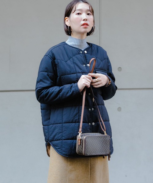 【大人カジュアルスタイルに欠かせないキルティングブルゾン】 リバーシブル仕様の、スタイリングやその日の気分で変化をお楽しみ頂けるブルゾンが登場。シンプルなデザインを表面に着用頂くと後ろのブランドネームが、キルティング側で着用頂くとパイピングデザインが楽しめます。両面に胸ポケットがついているので機能面も充実◎マットな素材感はカジュアル過ぎず、女性らしさを演出します。ヒップが隠れる丈感でバランス良く、コーディネートに馴染むデザインに仕上げました。 【frostline】 1966年にコロラド州で創業されたアウトドアブランド。マウンテンパーカーやダウンジャケット、ベスト、バックパック等、オーセンティックなアウトドアアイテムをリリースし、今でもコアなアウトドアやヴィンテージウエアのファンたちから支持されています。 ※商品の特性上、縫い目部分からダウンやフェザー、中綿などの詰め物が出ることがありますので、ご注意ください。 総重量 : 約390g ※この商品は、摩擦(特に湿った状態での摩擦)や、汗や雨などで濡れた時は他の衣類や下着(特に白物)に色移りする場合がありますので、出来るだけ単品洗いをおすすめします。 ※洗濯は石油系ドライクリーニングをおすすめします。 ※その他お取り扱いに関しましては、商品に付属のアテンションタグをご覧ください。 ※商品画像は、光の当たり具合やパソコンなどの閲覧環境により、実際の色味と異なって見える場合がございます。予めご了承ください。 ※商品の色味の目安は、商品単体の画像をご参照ください。 ----------------------------- 透け感:なし 伸縮性:なし 裏地:なし 光沢:なし ポケット:あり -----------------------------