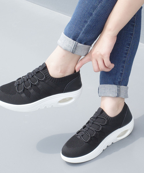◆◇◆2022AW新作◆◇◆ 着地時の衝撃を吸収するエアーパーツ入りニットスニーカー 普段使いやママコーデとしてもカジュアルに使えます! 医療現場や、介護の現場でも活躍!働く足を快適にサポート! ナーススニーカーとしても活躍できます。 ◆◇◆POINT◆◇◆ 適度な伸縮性をもつ柔らかなフライニット素材を使用し、足の形に優しくフィット。 通気性が良く取り外し可能なカップインソール ソール前後の湾曲形状により無理なく自然な歩行を促してくれます。 紐を結ばず脱ぎ履き出来るスリッポンタイプなので毎日気軽に履いて頂けます。 片足重さ 約229g(計測サイズ:23.5cm) 【スタッフ着用コメント】 ●普段サイズ22.5~23.0cm甲普通・足幅細め ソックスで着用 【23.0着用】→ほどよくゆとりもってちょうどよく履けます。 ●普段サイズ23.5cm甲普通・足幅普通 ソックスで着用 【23.5着用】→ちょうど良く履けます。 ●普段サイズ24.0~24.5cm甲高め・足幅広め ソックスで着用 【24.0着用】→全体的にゆったり楽に履けます。ソックス着用でも窮屈感なくぴったりで履けます。23.5だと甲や幅がややぴったりめになります。 【24.5着用】→ゆったりしていて少し大きかったです。 【キーワード】 スリッポン ストレッチ 伸縮 ニットスニーカー エアーソールフライニットスニーカー 船底 4センチヒール スリッポン レディース エアクッション 履きやすい ブラック グレー ホワイト 22.5 25.0 歩きやすい 軽量 軽い 厚底 通気性 看護師 介護 HoloPono ホロポノ 【注意事項】 海外生産品につき、エアー部分が一部塗装が、はみ出ているものがございます。ご理解の上ご購入いただきますようお願い申し上げます。