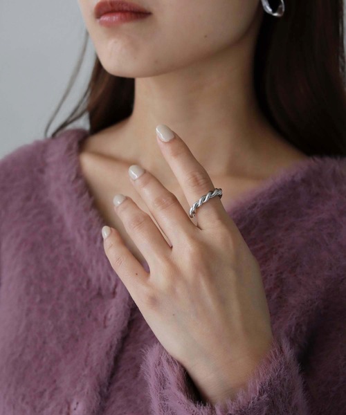 ネジリのシルエットが新鮮な表情を醸し出すリング2本のリングが重なりあうとちょうどねじねじとツイストをきかせたデザインに。細いリングながら表情のあるデザインでこれ一つでもポイントになります。結婚式や卒業式・入学式などのオケージョンシーンやパーティーシーンはもちろん、カジュアルな普段使いまで、ファッションを選ばずお使いいただけます。お手持ちのリングとの重ね付けも楽しめて重宝するリングです。※撮影場所により、実際の色味と若干異なる場合がございます。 あらかじめご了承くださいませ。【お気に入り登録のおすすめ】▼商品のお気に入り登録気になるアイテムのハートマークを押してお気に入り登録をして頂きますと、完売カラーの再入荷通知やラスト1点の通知、セール通知を受け取ることができます。▼ブランドのお気に入り登録新商品の発売や再入荷情報、タイムセールやクーポン発行のお知らせなど、いち早くブランドのお得な情報を受け取ることができます。ぜひご利用頂き、お買い物をよりお楽しみください。※ご注文いただいた予約商品のお届け時期の確認は、注文履歴ページより行えます。