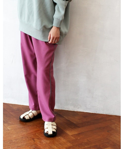 定番のイージーパンツ、配色ラインのカラーパンツでリニューアル! 今回も微調整して、さらに履きやすく、カラダをキレイにみせるシルエットにしました。 股上深めなので、ジャストウエストでも、ちょっとゆるっと腰に落としたりも着こなせます。 シンプルなので、どうにでも着られる便利ボトムです。 スウェットとかTシャツとか、王道カジュアルアイテムもカラーボトムとスタイリングすると、雰囲気ちょっとモードに寄せていけるのも、年齢的にもちょうどいいのもあるのかも。 本当によく履いてます。 minoriTY-funにしかない、『L’Ancre』は日常着であるとともに、大人のカラダをバランス良く見せるシルエットと、ちょっと気の利いたデザインでお洒落ゴコロをくすぐる服を作ります。 (着用モデル身長:163cm) 〈マイノリティファン〉