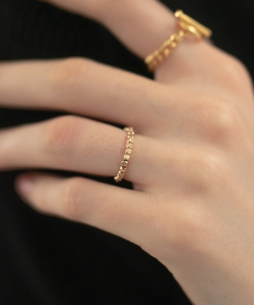 美しく光を跳ね返すペブルリング。 一粒一粒が美しく光を捉えるようにカットされた小石を連ねたようなリング。 連結には伸縮性のあるテグスを用いているので若干のサイズ調整が可能で着脱もしやすいです。aboutnovice(ノーヴィス)は大人のためのモダンでベーシックなアクセサリーを、リーズナブルな価格で提案します。