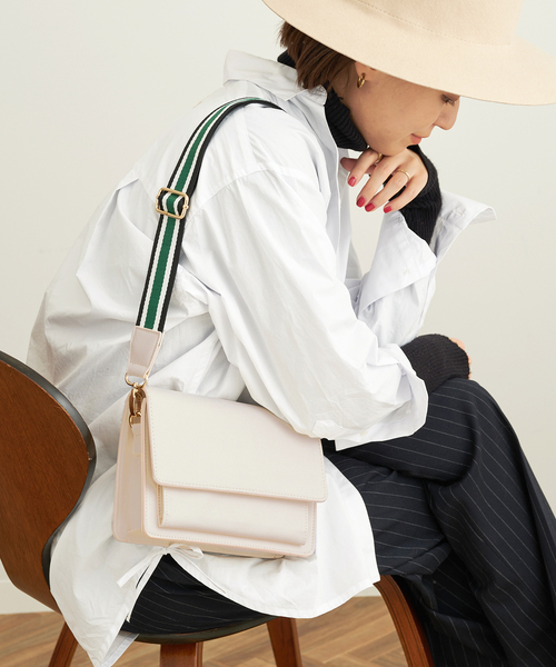 【2022AW】B.C STOCK※こちらは品番 22092710000830、22092710001110 の追加商品です。ショルダーストラップにストライプのラインテープを使ったバッグ。お財布やスマホなど身の回りの小物がちょうど収納できる、デイリーユースに便利なサイズ感。フラップ部分はマグネットボタンでしっかり閉じられる仕様。ボディの内側には内ポケット、フラップと重なる部分にはマチ付きのアウトポケットつきで、鍵やリップなど細かい持ち物も仕分けしやすくなっています。カラー毎にテープのお色も異なるデザインに。ラインテープと別に、それぞれ本体と同色無地のショルダーストラップも付属しているので、スタイリングに合わせて付け替えてお使いいただけます◎※取り扱いについては、商品についている品質表示でご確認ください。・摩擦や濡れによる、色移りに気をつけてください。 ※店頭・屋外での撮影画像は、光の当たり具合で色味が違って見える場合があります。商品の色味は、スタジオ撮影の画像をご参照ください。本体:洗濯不可