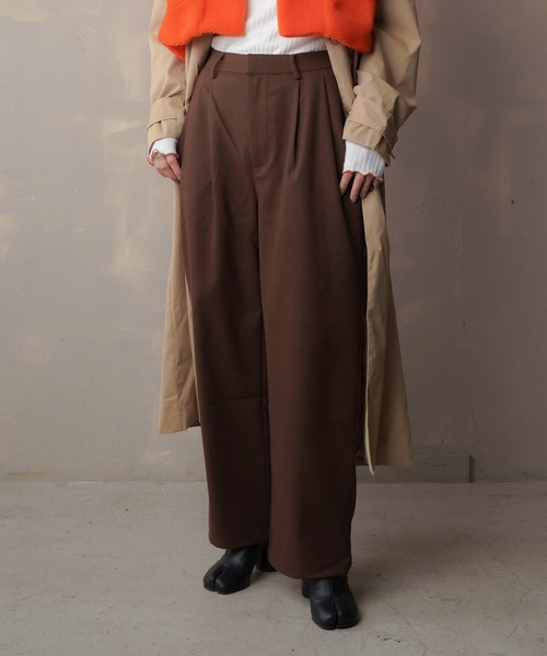 【あったか冬素材が嬉しいタックパンツ】 ▼おすすめポイント 1.脚を長く見せてくれるハイウエストタイプのストレートパンツ。 フェイクウール素材で冬らしい温もり感ある見た目も可愛いです。 2.シーンを選ばないベーシックなカラー展開で、オンオフ問わず活躍するアイテム。 ゆとりのあるサイズ感がはくだけで様になる、トレンドに左右されないモードな大人パンツです◎ 3.ロングスリーブTシャツ等のカジュアルアイテムとも相性よく、着回し万能な一着。 バックウエストはゴム仕様で、リラックスした穿き心地です。 ▼おすすめのStyling 1.ホワイトニットにワイトパンツを合わせて冬の定番ワントーンコーデ♪ 2.ヘンリーネックニットにローファーを合わせてメンズライクなマニッシュコーデ。 3.ブラウスを合わせてオフィスシーンにも。 ※スタイリングは、詳細画像のコーディネートでご覧ください ▼担当からひと言 1.1枚持っていると本当に便利なアイテムです! 2.小物使いやアウター次第でコーデの幅がぐんと広がります! ----------------------------------- 透け感:無し 厚さ:厚手 伸縮性:無し 洗濯方法:ドライクリーニング可能 ----------------------------------- ※詳しいお手入れ方法は、商品タグをご確認ください。 ▼お悩みの方に ------------------------------ 〇アイテムのお気に入り登録 気になっているアイテムの色、サイズの♡をクリックして、ラスト1点を通知でお知らせします 欲しかったアイテムの♡をクリックすると再入荷の通知でお知らせします。 ------------------------------ 〇ショップのお気に入り登録 ショップページの♡をクリックすると、新商品、人気アイテムの再入荷など、お得な情報を受け取ることができます。 ------------------------------ ▼注意点 ※掲載画像(商品、モデル着用とも)につきまして、撮影環境やお客様の閲覧されますパソコンや携帯電話キャリアによって、実際の商品とは多少異なった色に見える場合があります。 また表示のサイズ感も実物とは若干異なる場合もございますので、予めご了承ください。 ※タグ・バーコードのついたシールには、サイトのご案内と異なるカラー名が記載されていることもございます。ご了承ください。