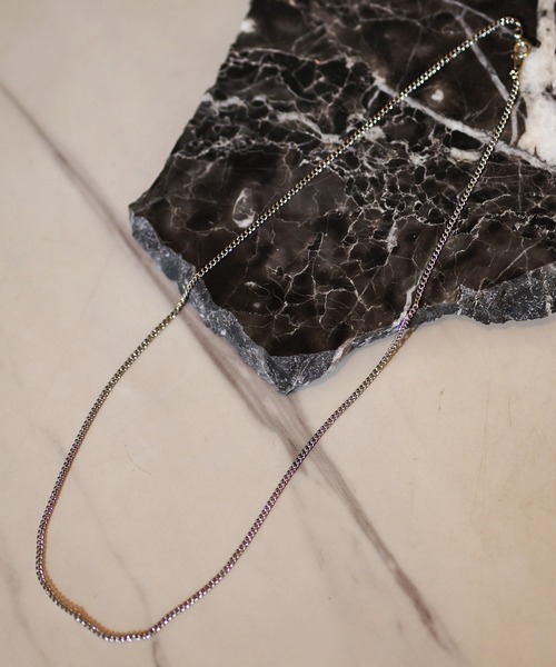 チェーンデザインのネックレスです。シンプルながチェーンデザインでトレンドのアイテムです。よくアクセサリーをコーデに取り入れる方はもちろん、アクセサリー初心者の方も取り入れやすいデザインです。真鍮素材にメッキ加工を施したアイテムでシルバーカラーの光沢がコーディネートに映えます。デザインを極限までシンプルに仕上げたチェーンネックレスですので、無地Tシャツとはアクセントになり、アロハシャツ等の柄物やレイヤードスタイルに合わせても全体のコーディネートを引き締めてくれるアクセサリーです。50CMの長さでバランスがとりやすいアイテムのため、他アクセサリーとの重ねつけとしてもおすすめ。使い込むうちに風合いが増し、愛着わくオリジナルネックレスへと様変わりします。※男女問わずユニセックスでお使い頂けるので、ご自身用は勿論、プレゼントにもオススメです。