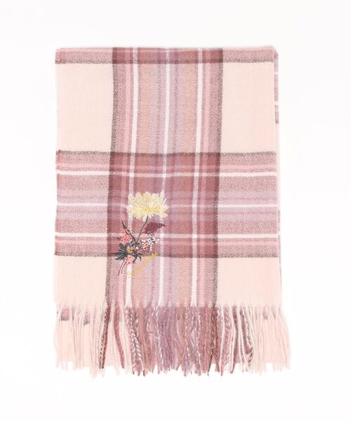 なめらかなカシミアタッチの肌触りが心地よいチェックストール。暗くなりがちな冬のコーディネートに華やかさをプラスしてくれる1枚です。色鮮やかなダリア刺繍がポイント。 お手入れ:手洗い