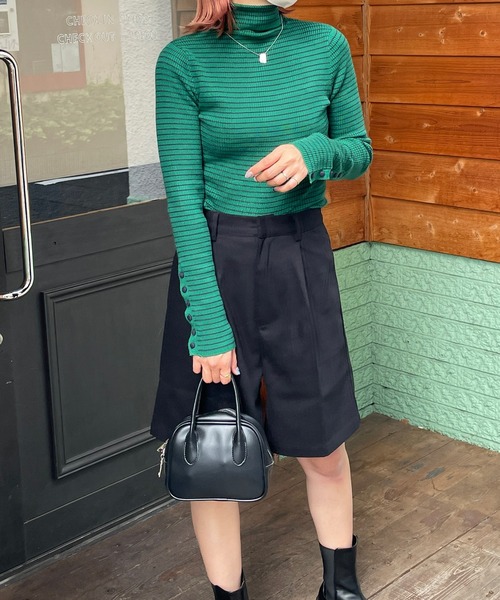 《袖ボタンボーダータートルリブニット》程良くフィットするサイズ感で、1枚ではもちろん、インナーとしても使えるアイテムです。もっちりとした肌当たり柔らかな素材で、着心地リラクシーなのも魅力のひとつ。袖と首からちらっとカラーを見せるスタイリングも今年っぽく仕上がります。また、袖元のボタンデザインもポイントです♡156cm/160cm/162cm※ご覧頂くモニター・環境等により実際の商品と多少色味が異なって表示される場合がございます。 予めご了承をお願いいたします。【お買いものをよりお楽しみいただく為に!】▼商品のお気に入り登録(ハートマークをクリック)完売カラーの再入荷通知や、ラスト1点の通知、セールの通知も受けることができます。▼ブランドのお気に入り登録新商品や再入荷など、いち早くブランドのお得な情報を受け取ることができます。