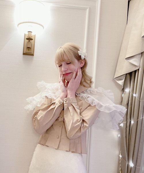 セレクトブランド<pain>取り外し可能なオーガンジー襟がセットになったシャツブラウス。シャツはさりへないペプラムシルエットでウエストが細く見えるタックデザイン。背面をゴムシャーリングにしていますので伸縮性も◎シャツは綺麗めなシンプルデザインなのでオフィスコーディネートにも。オーガンジー襟はアクセントとして気分によって取り外しできます。インでもアウトでも着こなせる丈感でこれからの時期はニットとレイヤードするのもおすすめです!