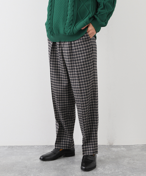 ■デザイン 英国のミリタリートラウザーをデザインベースにしたトラウザー型パンツ。 ウエストの後ろ身部分をゴムシャーリングさせたハーフイージー仕様で、1プリーツ、セミワイドの緩めのテーパードシルエットが特徴です。 ■素材 オーストラリア産のウィナーズ(ラムとメリノの中間の羊毛)を原料に使用したチェック柄のフランネル。 弾力感としなやかさが特徴のメリノと上質な光沢感が特徴のラムの良いとこ取りな風合いの素材です。 チェック柄もレトロムードのある配色、柄になっています。 【IENA EDIFICE LA BOUCLE / ラブ―クル】 IENAとEDIFICEから新しいコンセプトブランドが誕生。 コンセプトは「ありふれた日常に、ちょっとした非日常を」。 上質で本物を求める大人の女性・男性に向けたコンセプトブランドです。 【ご注意】 ※商品の色味につきまして、お客様のお使いのPCのモニター環境により実際のカラーと画像の色味が違って見える場合が御座います。予めご了承の上、ご注文下さい。 ※店頭・外での撮影画像は光の加減で、実際の商品より明るく見える場合が御座います。 モデルサイズ:身長:179cm 着用サイズ:3 本体:ドライクリーニング