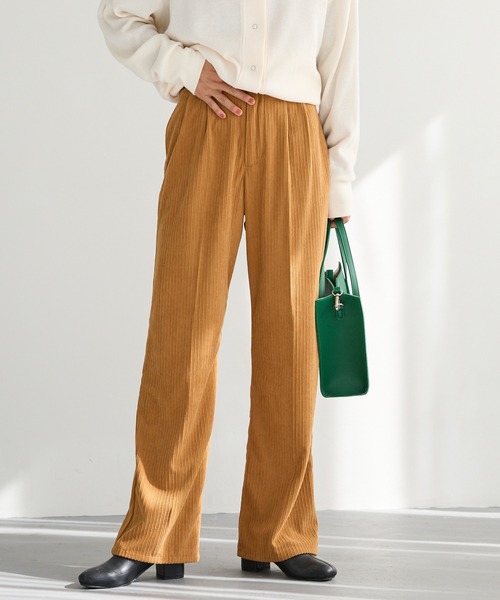 シーズンムード高まるコーデュロイ素材のタックワイドパンツ穿くだけで季節感をプラスしてくれるコーデュロイパンツが登場!ワイドなシルエットと柔らかい素材が履き心地抜群の1枚です。フロント部分にはタックを入れ、脚長効果も◎ウエスト周りをスッキリと見せてくれるのもポイントです!細めのランダムなコーデュロイデザインはカジュアルコーデだけでなく、キレイめにも着て頂けます。さらっとした素材で履きやすく、ごわつきが苦手な方も取り入れやすい1枚です。程よい厚さで、トップスインもしやすく幅広い着こなしが楽しめます◎ロンTやスニーカーでカジュアルに合わせたり、細目のニットやカーディガン、ローファーなどと合わせてキレイめなコーディネートがおすすめです。選べるサイズ展開で低身長の方から高身長の方まで幅広く穿いて頂けます◎ベーシックなカラーはもちろん、今年らしいブルーやグリーンのアクセントカラーは、トレンドライクな着こなしができます◎POINT・コーデに季節感をプラスするコーデュロイ素材・ゆとりのあるワイドパンツ・フロントタックで美脚効果抜群・柔らかい素材で肌触り◎・ハイウエスト仕様透け感…なし伸縮性…なし裏地…なしポケット…あり生地の厚さ…普通スタッフ着用レビュー(153cm/Sサイズ着用)ギリギリ地面につかないくらいの丈感で、シューズを合わせれば丁度良いサイズ感でした!ワイド過ぎないシルエットとタックがスラっとした印象にしてくれます!さらさらのコーデュロイ素材が履き心地でした!(153㎝/Mサイズ着用)厚底靴や、ブーツを合わせると引きずらずに穿けました!ウエストがSよりゆとりがあるので、ニットやスウェットなどをインして合わせたい方はMがおすすめです!取り扱い方法※取り扱いについては、商品についている品質表示でご確認ください。※取り扱い上のご注意摩擦や(特に湿った状態での摩擦)や、汗や雨などで濡れた時は他の衣類や下着(特に白地)に色移りする場合がございますので、十分ご注意ください。クリーニングの際は、多少色落ちすることがありますので、単品洗いをして下さい。他の淡色物に色移りすることがありますので、すみやかに処理(脱水・乾燥)するようお願いいたします。※商品画像は撮影時の光や角度により、実物の色味と異なって見える場合がございます。≪お買い物をお楽しみいただくために≫▼商品のお気に入り登録完売カラーの再入荷通知や、ラスト1点の通知、セールの通知も受け取ることができます。▼ブランドのお気に入り登録新商品や再入荷等、いち早くブランドのお得な情報を受け取ることができます。