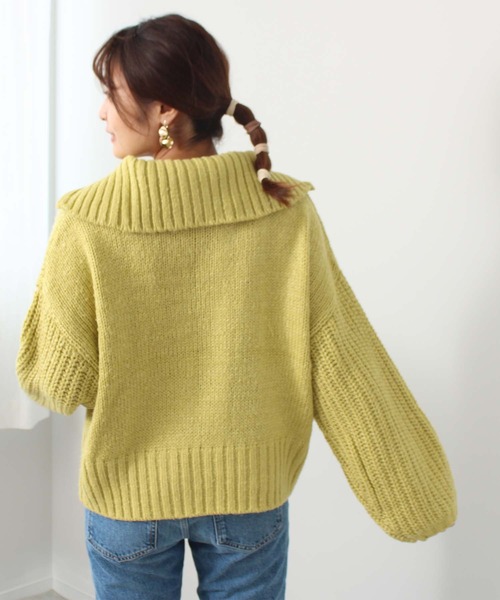 トレンドライクなハーフジップニット☆【Design】今年も流行のハーフジップのニットが登場!!首元はファスナーを全部上げて抜け感のあるボリュームタートルにしても、開けてこなれ感のあるオープンカラースタイルの2WAYで楽しめるデザインにしました。身頃と袖で編み方を変えてシンプルになりがちなニットに変化を持たせました。袖口は広めにしてリラクシーでカジュアルな仕様しました。【Fabric】しっかりとした太めの毛糸をしよう。程よく厚みも有り、ふんわりと編まれているのでゆったり柔らかいニットになります。【Color】モノクロ2色+鮮やかな寒色2色の4色展開・クロ(ブラック 黒色)・グレー(オートミール 杢ベージュ 灰色)・ライトグリーン(黄緑 ライム 緑色)・ブルー(スカイブルー 空色 水色)【Coordinate】ロングマーメードスカートとのコーデがおススメ!!アクティブ感のあるハーフジップニットにロングのマーメードスカートが一気に大人っぽくしてくれます。デニムとの相性もいいのでシンプルなデニムにファスナーは開けたまま、インナーをチラ見せしてもカジュアルなオフコーデになります。また、チェック柄のパンツと合わせてシーズンライクコーデも◎この時スニーカーでなくパンプスと合わせると、こなれ感のあるコーデに仕上がります!!オン・オフで活躍してくれそうなニットです。toucher du brise(トゥシェドブリス)ガーリーなテイストを取入れて上品で可愛い、ほど良くエッジの効いたアイテムをベースにトレンドをミックスし、大人女性の等身大のスタイルを提案します。《お気に入り登録》でお得な情報がいっぱい・「商品のお気に入り登録」で再入荷通知や、人気アイテムのラスト1点通知、セール通知も受け取ることができます。・「ブランドのお気に入り登録」でレディース新作アイテムや再入荷など、お得な情報を受け取ることができます!