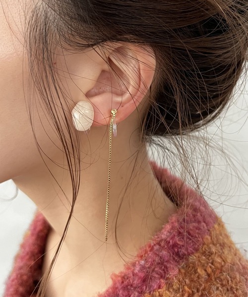 ■デザイン■ 付けやすいモチーフタイプと少し大人っぽく使える垂れ下がるデザインとセットになっています。イヤリングなので、耳の穴が開いてない方にも使っていただけます◎