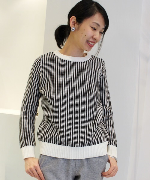 チェックのように編まれたニット。 程よいフィット感で着心地の良い一点。 さらっとした素材感は3シーズン活用して頂けます。 ※店頭での撮影画像は、光の当たり具合で色味が違って見える場合があります。 商品の色味は、スタジオ撮影の画像をご参照ください。 shop modelグレー:身長163cm 着用サイズ:FREE