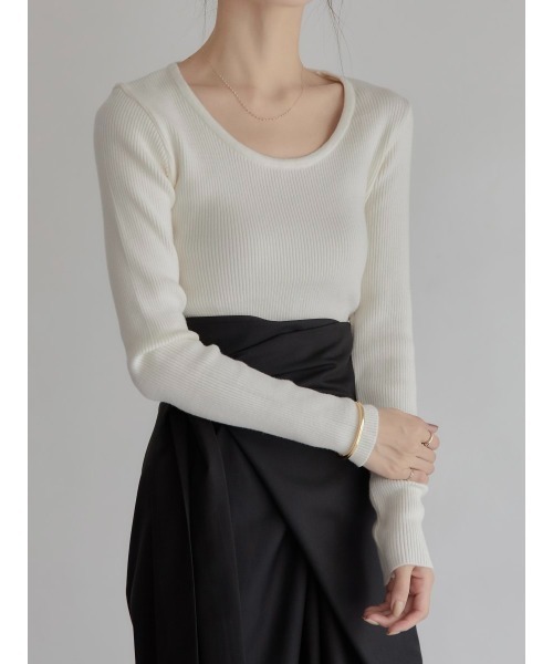 全てのボトムスにあう万能なニット。 深い襟ぐりにより、デコルテを美しく、女性らしい印象に◎しっとりなめらかな素材なので、ストレスフリーな着心地と、一枚でもアウターを合わせてもすっきり着られる着回し力が魅力のアイテムです。ブラック、アイボリーの2色展開。