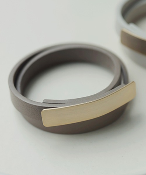 本革を使用したバングル、メタルパーツも手首ラインに沿うように作りました 身に付けるだけできちんと見えのするアイテムです。 シンプルで使いやすいデザインの為デイリーにお使い頂けます。