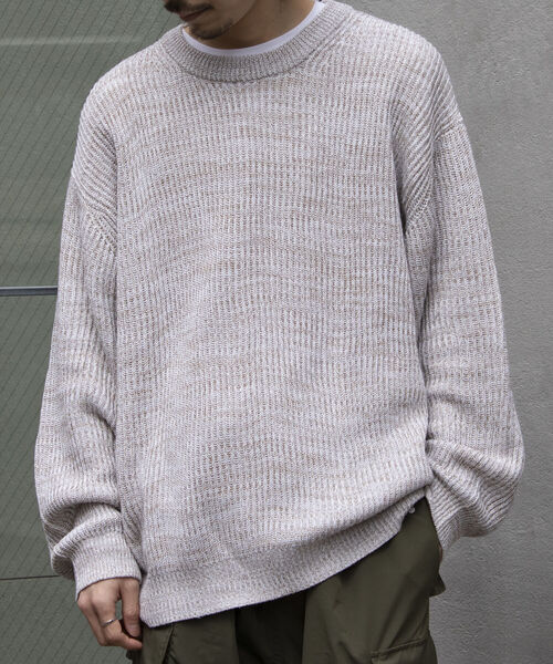 ローゲージで編まれた暖かみのある風合いが特徴的な畔編みクルーネックプルオーバーニット。ニュアンス感の4色のミックスカラーが目を引く多色使いながらも、肌馴染みの良い落ち着いた表情が着こなしの幅を広げてくれます。クルーネックのシンプルなボディに、リブ編みでアクセントをつけた柔らかなシルエット。絶妙なミックス編みの奥行きのある色合いが楽しめるシンプルかつレトロな印象の1着です。ゆったりとした身幅やアームホールなど、今年らしいリラックス感のあるオーバーサイズシルエットに仕上がっています。冬~春にかけてアウターのインナーはもちろん、1枚着でのメインアイテムとしてはインナーにシャツや定番のタートルなどを忍ばせたレイヤードや、トレンドのベストを上から重ねる着こなしもおすすめです。【GLOSTER/グロスター】『男性であること、女性であること、日本人であること、人間であること。』自由に生きる為に必要な洋服であり、着る人を主体と考えたプロダクトを提案します。普遍的な洋服の礎であるワーク・ミリタリーをベースにエッセンスとして艶を加えて形にします。洋服の原型を生かしながらもひねりの効いた素材を使い、ディテールは歴史の焼き増しではなく新たな価値観を創造します。※お取扱い上のご注意アテンションタグを必ずご確認の上、着用又はお取り扱いください。※店頭及び屋外での撮影画像は、光の当たり具合で色味が違って見える場合があります。※商品画像に関しては出来る限り忠実に表示出来るよう努めておりますが、お客様がご利用のモニターの設定及び特性により、実際の商品と比較し色味に若干の誤差が生じる場合があります。※画像の商品はサンプルとなりますので実際の商品と仕様、加工、サイズが若干異なる場合がございます。◇商品のお気に入り登録◇【お気に入りに登録】を是非ご活用ください。 再入荷の通知や、ラスト1点の通知、セールの通知がいち早く届きます。◇ブランドのお気に入り登録◇新商品や再入荷など、いち早くブランドのお得情報が届きます。
