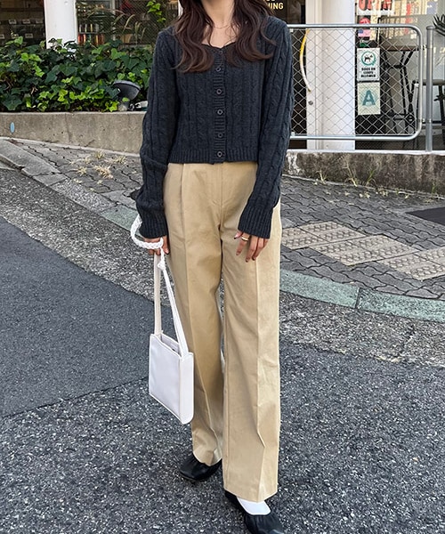 取り入れるだけで外国のシティーガールのような小洒落た雰囲気に仕上げてくれるチノパンツです!センタープレスが施されているので、脚をきれいに長く見せてくれます!カーディガンやニットなどと合わせるだけで、ワンランク上のコーディネートに仕上がります? 着用カラー:ベージュ 着用サイズ:Sサイズ